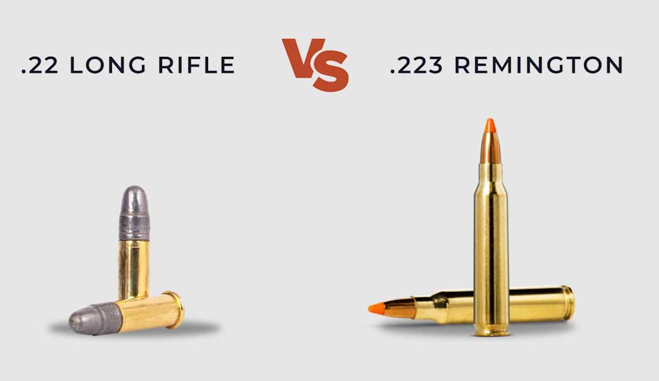 Die Geschosse von .223 Rem / 5,56×45 mm / GP90 haben einen Durchmesser von 0,224 Zoll (≈ 5,69 mm), während die .22 LR knapp 0,22 Zoll (≈ 5,59 mm) misst.